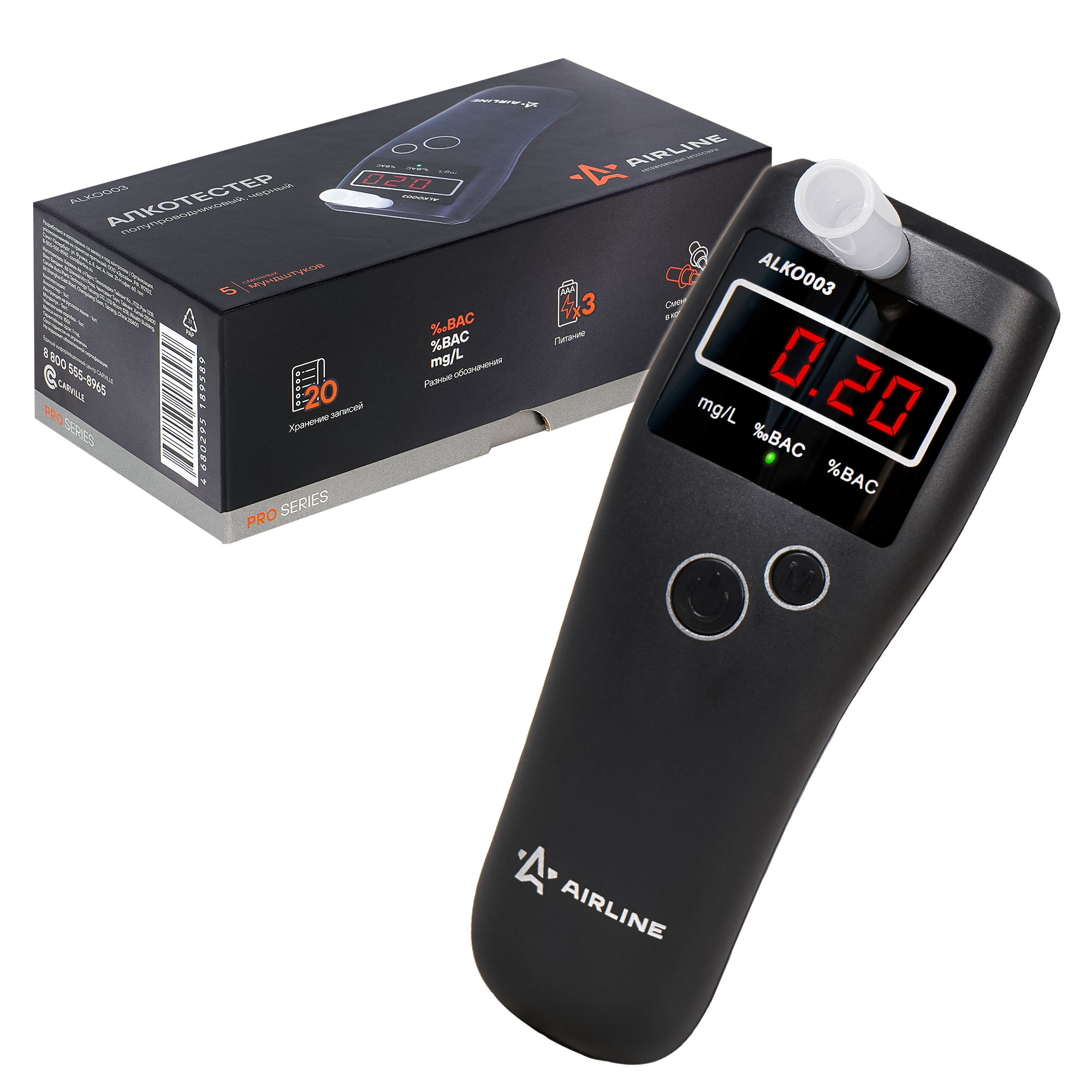 Алкотестер AIRLINE полупроводниковый черный ALKO003