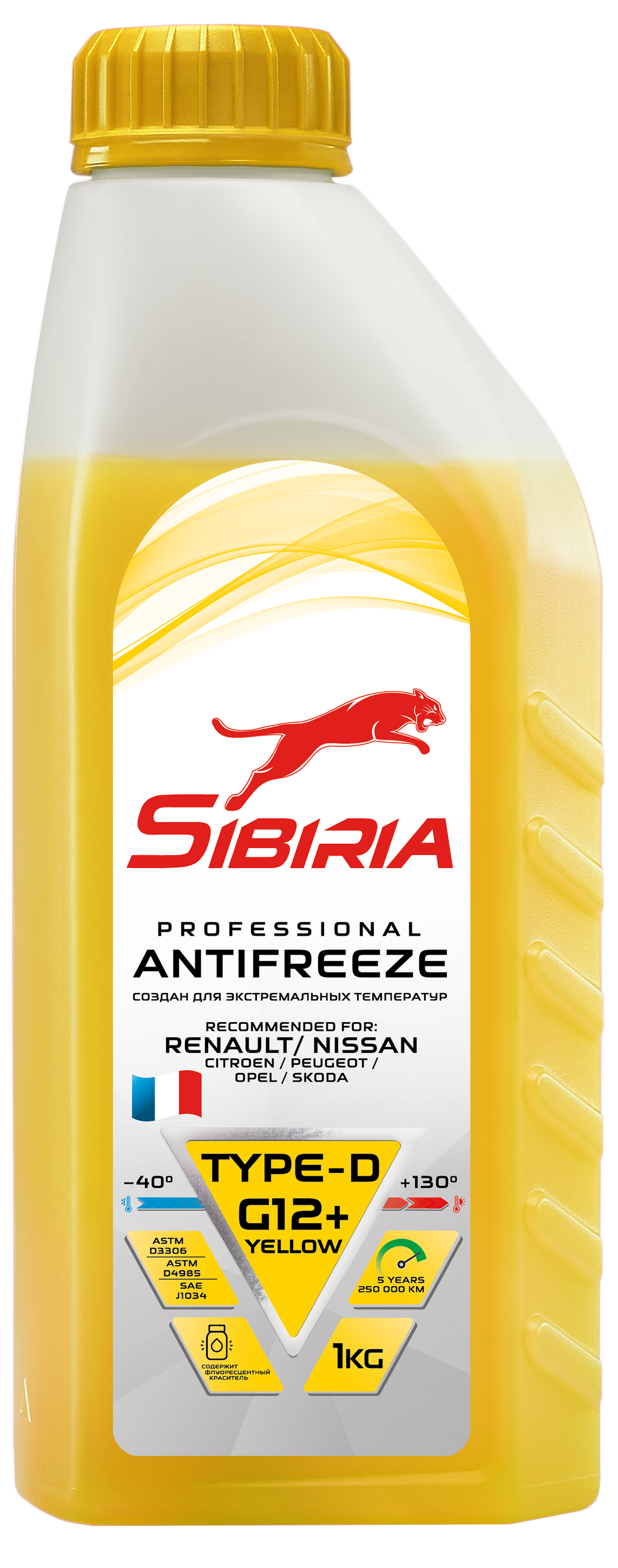 Охлаждающая жидкость Antifreeze SIBIRIA G-12+ (жёлтый) -40C (1кг)